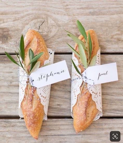 Another one I haven’t done just yet but I adore is giving each guest a personal loaf with some type of decoration around it. We’ve soooo over the era of the bow (I know I know, I put a picture with bows & bread above but those were the best references i saw) so think outside the box.